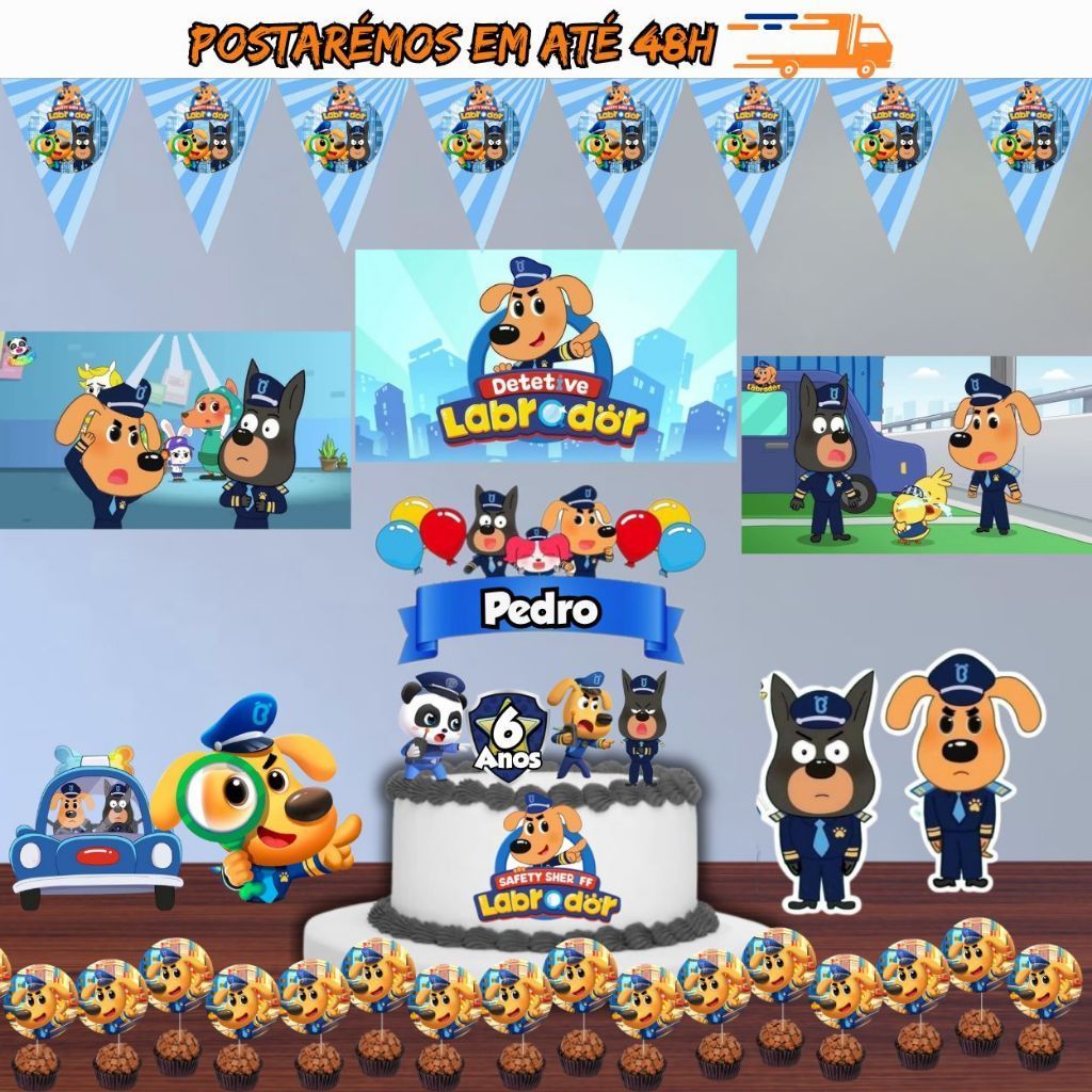 kit festa Detetive labrador Aniversário Mêsversário decoração de festas, festinhas só um Bolinho
