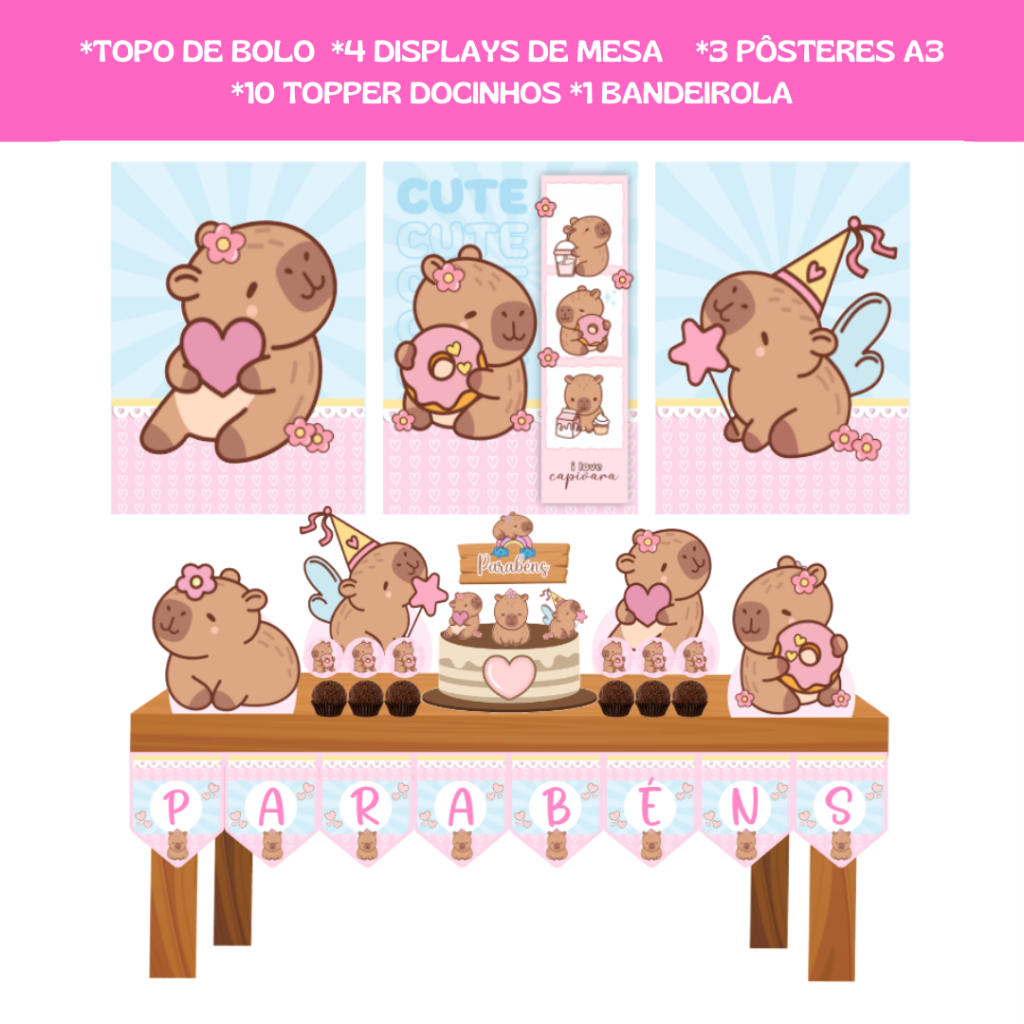 Kit Festa Em Casa - Capivara - Mesversário - Só Um Bolinho Decoração Infantil - Menina