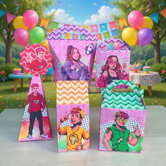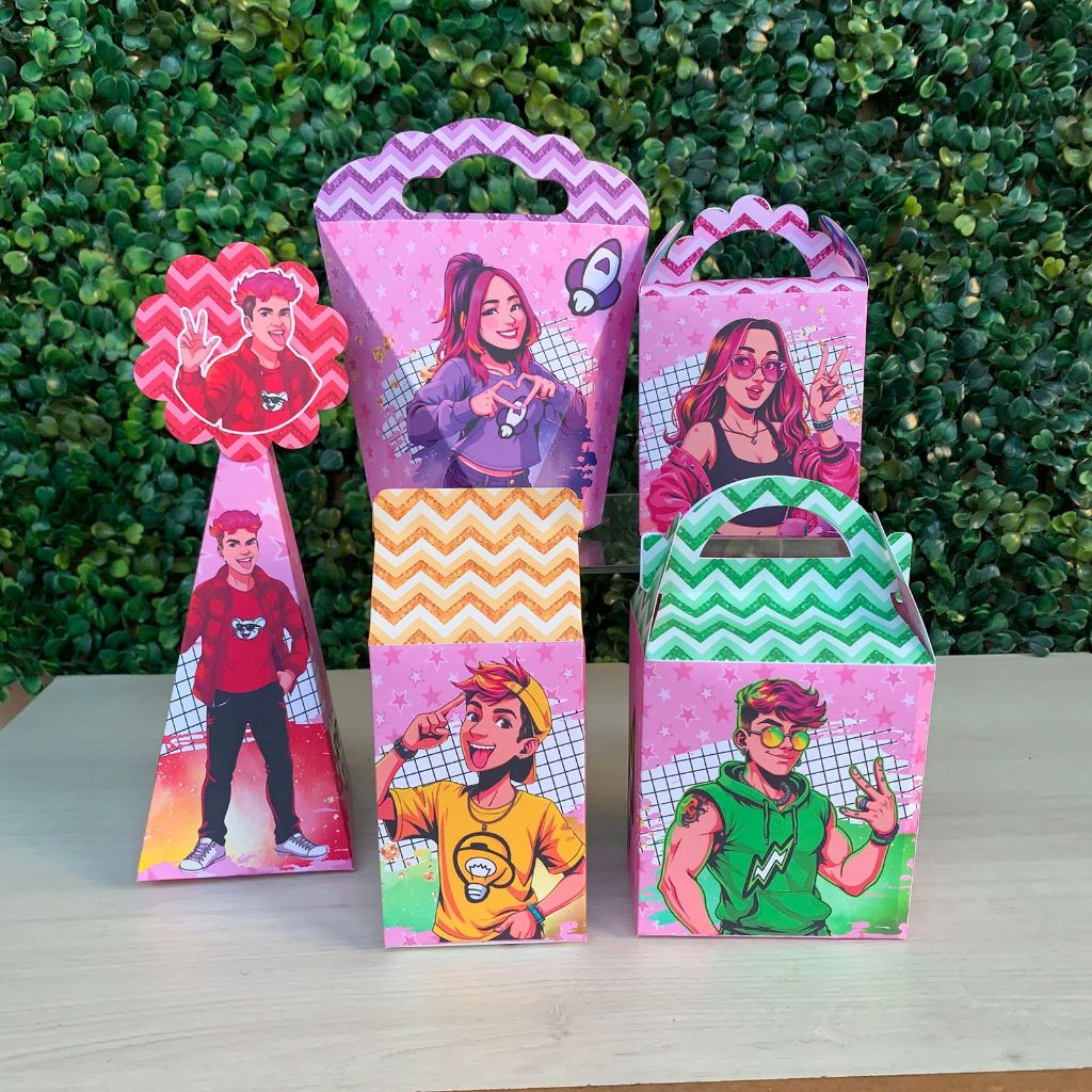 Kit festa Emilly Vick - Lembrancinha festa Clube dos Rosa - Pegue e Monte PEGUE E MONTE - NÃO PERSONALIZADO *Você está adquirindo um produto na modalidade pegue e monte, onde o material vai cortado e vincado( com as marcações de dobra) apenas para encaixar e colar podendo ser usada cola branca, cola bastão, cola de silicone ou outra de sua preferência impressas em papel Off set fosco com alta qualidade, vincadas e prontas para você colar e montar Para colar utilizar de cola branca, silicone ou cola quente PRODUZIMOS TODOS OS TEMAS No kit são os 5 modelos de caixas como na foto, e são enviadas como o anúncio, Produzidas em papel Off set fosco e impressão em alta resolução. Não são personalizadas Não acompanha laço e meia pérola As caixas são enviadas prontas para você colar e montar. Modelos de caixinhas e tamanhos altura e largura : caixa Milk ( alt 13 cm x 6 cm largura) caixa Maleta ( alt 11 cm x 4,5 cm largura) caixa Pirâmide ( alt 13 cm x 6 cm largura) caixa Lanchinho ( alt 12 cm x 7,5 cm largura) caixa Triangulove ( alt 15 x 12 cm largura) Kit 20 caixas/ 4 de cada modelo Kit 40 caixas/ 8 de cada modelo >>>>>>>>IMPORTANTE<<<<<<<<<<<<<<<< Observações Gerais *O prazo de entrega é previsto pela plataforma; * A imagem pode sofrer variação de cor devido a configuração de cada monitor; * Por ser um produto artesanal podem sofrer alterações milimétricas para mais ou menos Kit festa Emilly Vick - Lembrancinha festa Clube dos Rosa