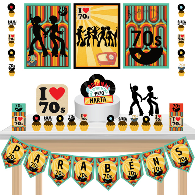 Kit Festa Fácil Kit Só Um Bolinho Anos 70 1970 Aniversário Comemore a Vida