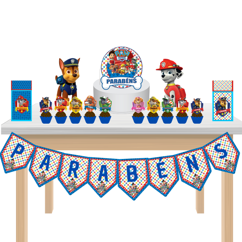 Kit Festa Fácil Kit Só Um Bolinho Patrulha Canina Desenho de Cachorros Mêsversário Aniversário