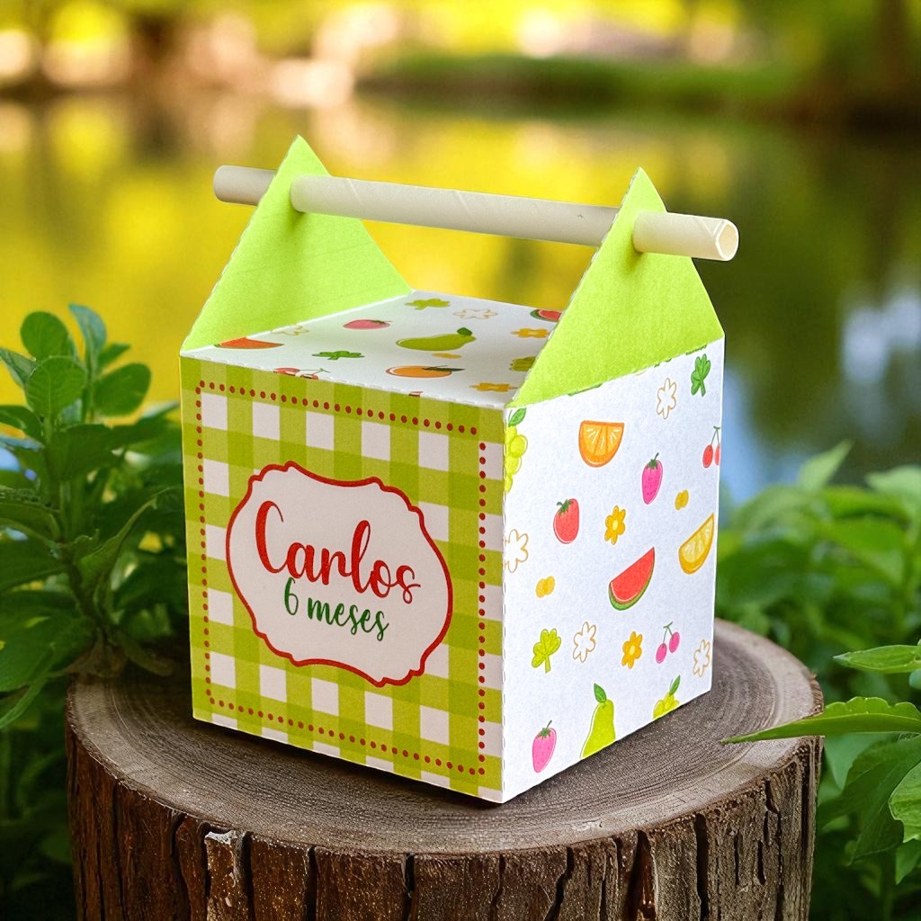 Kit Festa Infantil FRUTINHA Pegue e Monte Lembrancinhas - Aniversário - Caixinhas Personalizadas - Papelaria Personalizadas ✨ Lindo kit personalizado com nome e idade do aniversariante. Nosso Kit Pegue e Monte é a escolha perfeita para uma festa única. Produzimos cada peça com amor e cuidado, garantindo um resultado incrível e cheio de detalhes. Detalhes do Kit: . Enviamos porta bis duplo como mimo •As peças ja vao recortadas e vincadas. • Papel offset 180g Fosco, para durabilidade e acabamento impecável. • O cliente pode escolher a opçao sem laço ou com laço. • Enviado desmontado e vincado para fácil montagem. .Os apliques das caixas são impressos nas mesma. NAO TRABALHAMOS COM APLIQUE 3D NAS CAIXAS. • Envio rapido para você receber rapidamente. • Personalizamos com nome e idade; envie no chat após a compra em ate 2 horas, caso nao seja informado o nome e idade para personalizaçao dentro do tempo estipulado sera enviado SEM nome e idade, mais com muito amor. . As cores podem sofrer alteraçao , devido a luz e cenario das fotos. . Apenas mudamos os dados pessoais. . Não enviamos artes para aprovação. .A cor dos canudos e dos laços , caso a escolha seja com laço, porem variar de acordo com a disponibilidade do estoque. . Nossos kits sao sempre produzidos com muito amor e carinhos e com atenção aos detalhes e com responsabilidade. . As caixas não vao recheadas.