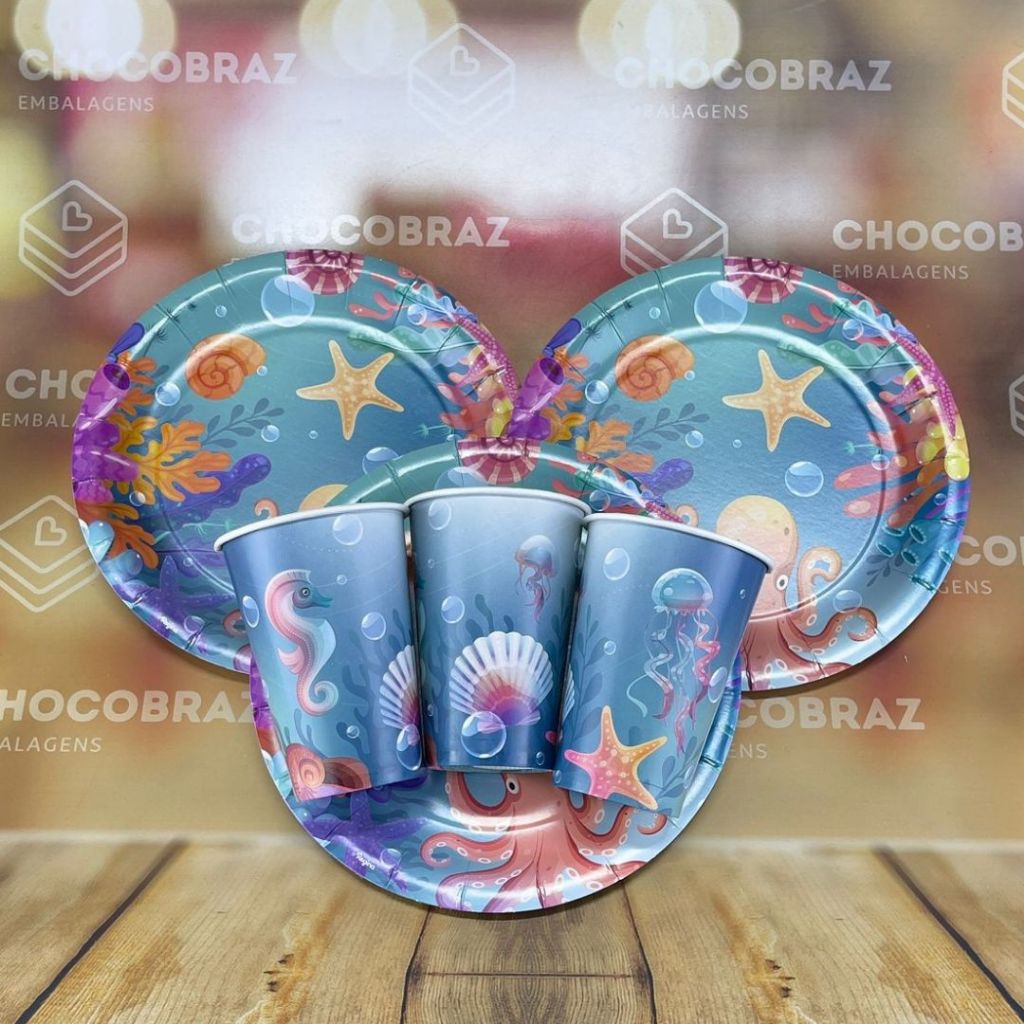 KIT FESTA FUNDO DO MAR 8 COPO PAPEL 180ML DE PAPEL 8 PRATO DE PALE 18 CENTIMETROS PODE SER UTILIZADOS EM DECORAÇÃO DE FESTAS COMO DECORAÇÃO DA MESA E IDEAL PARA SERVIR BEBIDAS E BOLOS REGINA PRODUTO LICENCIADO!