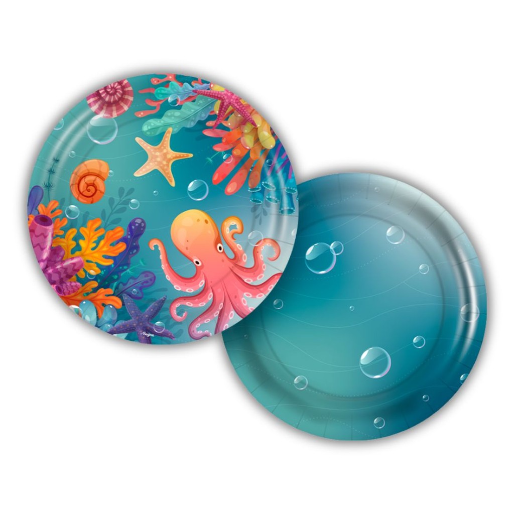Kit Festa FUNDO DO MAR 8 Pratos + 8 Copos Descartável 180 Ml Papel - REGINA