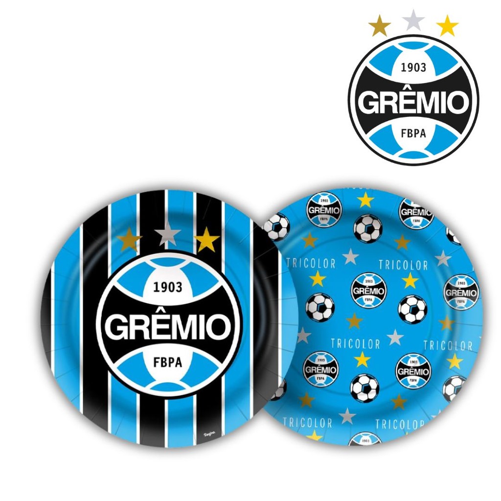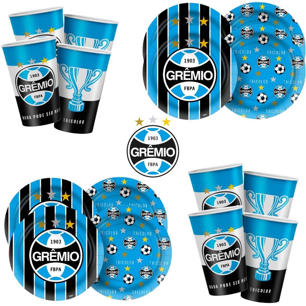 KIT FESTA GREMIO 16 COPO PAPEL 180ML DE PAPEL 16 PRATO DE PALE 18 CENTIMETROS PODE SER UTILIZADOS EM DECORAÇÃO DE FESTAS COMO DECORAÇÃO DA MESA E IDEAL PARA SERVIR BEBIDAS E BOLOS REGINA PRODUTO LICENCIADO!