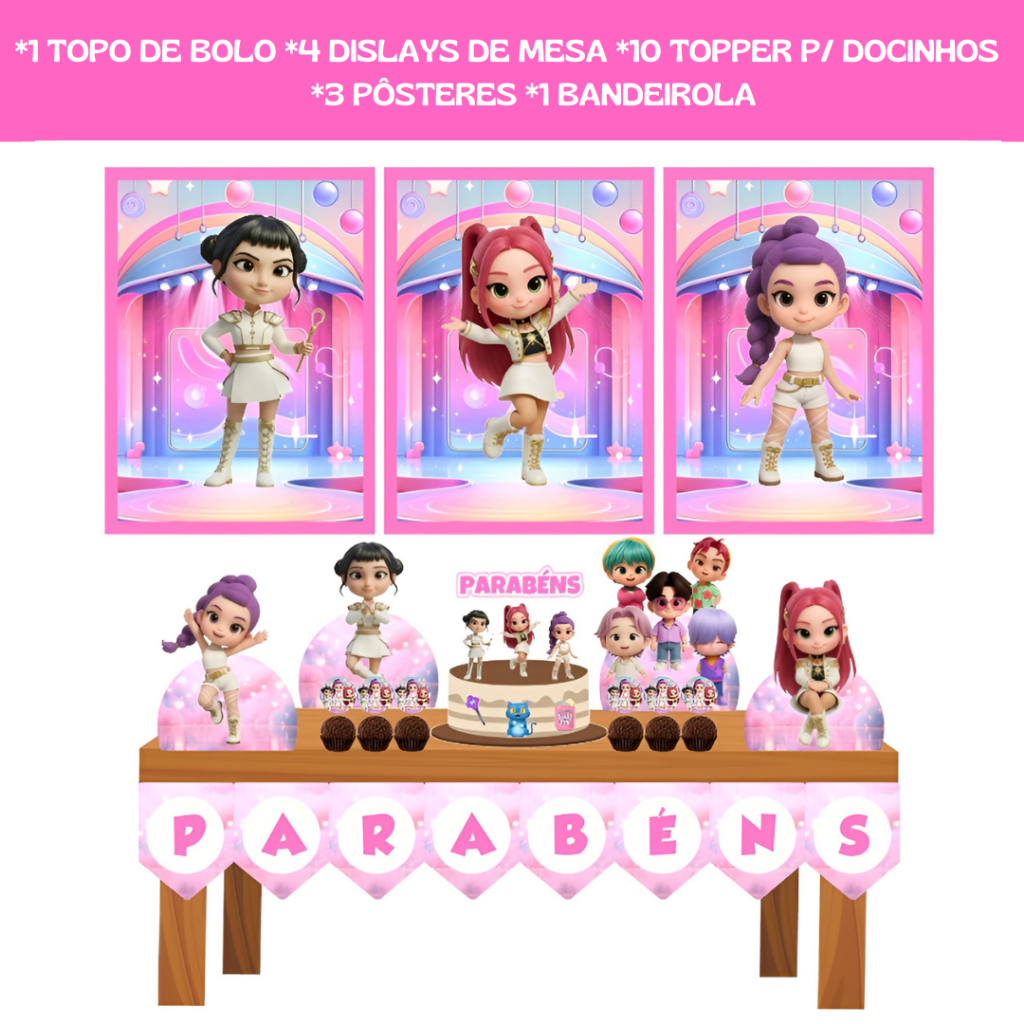 Kit Festa Guerreiras do K-Pop Baby Cute - Rumi - Zoe - Mira - Só Um Bolinho - Decoração Para Festa Em Casa