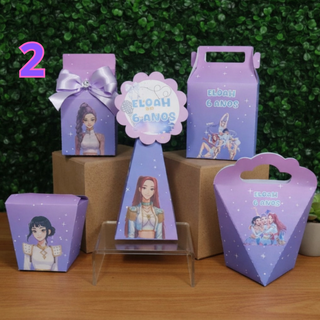 Kit Personalizado Guerreiras do K-Pop - PEGUE E MONTE TEMOS 3 OPÇÕES DE KIT PARA VOCÊ ESCOLHER !!! As caixas são enviadas somente cortadas e vincadas para você montar em casa, basta dobrar e colar. PERSONALIZAÇÃO: Informe nome e idade no CHAT em até 24horas após a compra. Caso não seja informado dentro do prazo, o kit será enviado SEM personalização. Verifique sempre o prazo de entrega para garantir que seu pedido chegue a tempo do evento. Lembre-se: podem ocorrer possíveis atrasos na transportadora, por isso faça seu pedido com antecedência! * Feito em papel Offset 180g (FOSCO SEM BRILHO), com impressão de alta resolução. * ARTE é totalmente impressa nas caixas (sem apliques 3D). * Não acompanha guloseimas Cada kit inclui 5 modelos de caixas Em todos os Kits irão os 5 modelos de caixas, são distribuídos da seguinte forma: Kit 15 unidades - 3 caixas de cada modelo kit 20 unidades - 4 caixas de cada modelo Kit 30 unidades - 6 caixas de cada modelo Kit 40 unidades - 8 caixas de cada modelo Kit 50 unidades - 10 caixas de cada modelo Por favor, envie-nos o nome e a idade da criança por mensagem, ou coloque nas observações.