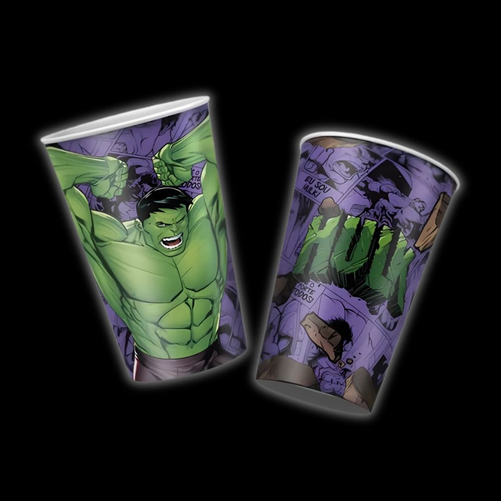 KIT FESTA HULK 8 COPO PAPEL 180ML DE PAPEL 8 PRATO DE PALE 18 CENTIMETROS PODE SER UTILIZADOS EM DECORAÇÃO DE FESTAS COMO DECORAÇÃO DA MESA E IDEAL PARA SERVIR BEBIDAS E BOLOS REGINA PRODUTO LICENCIADO!