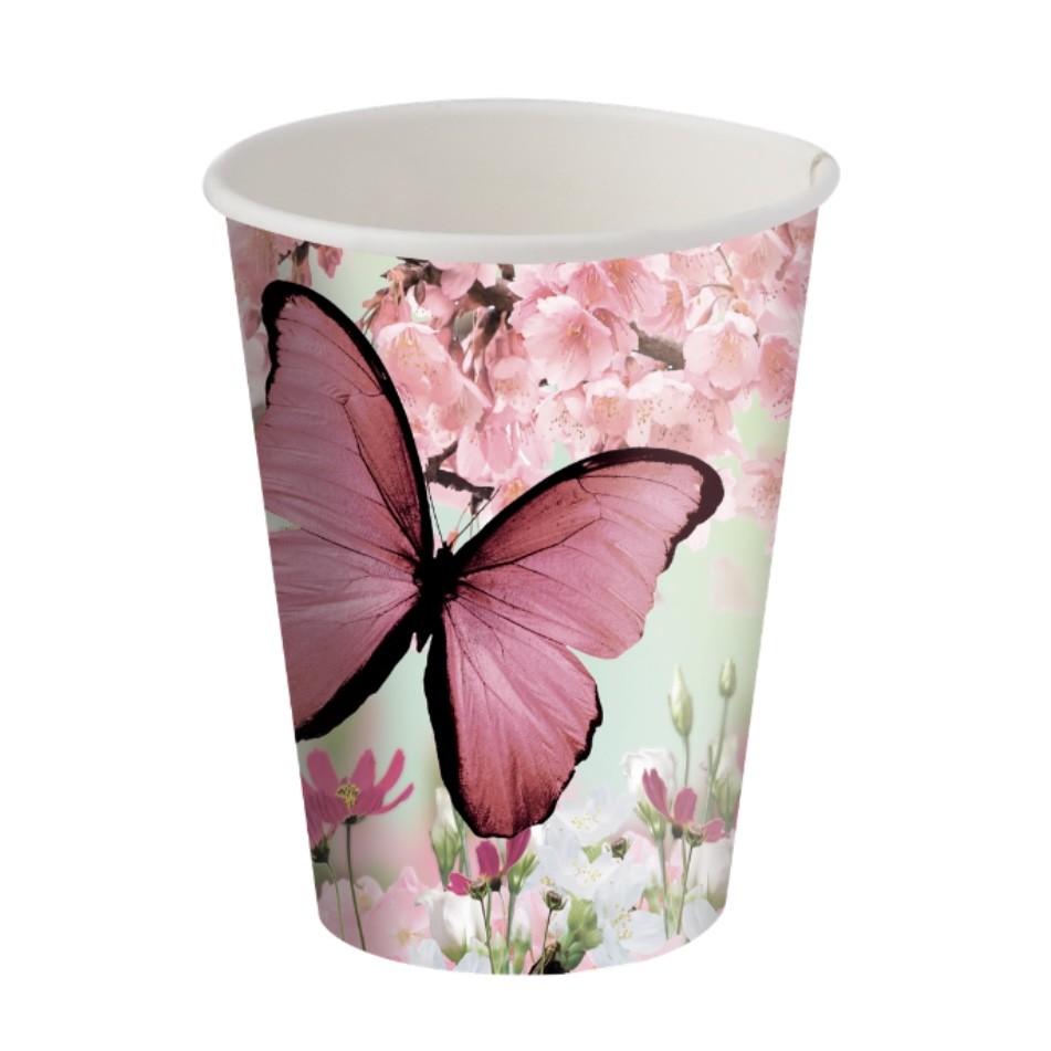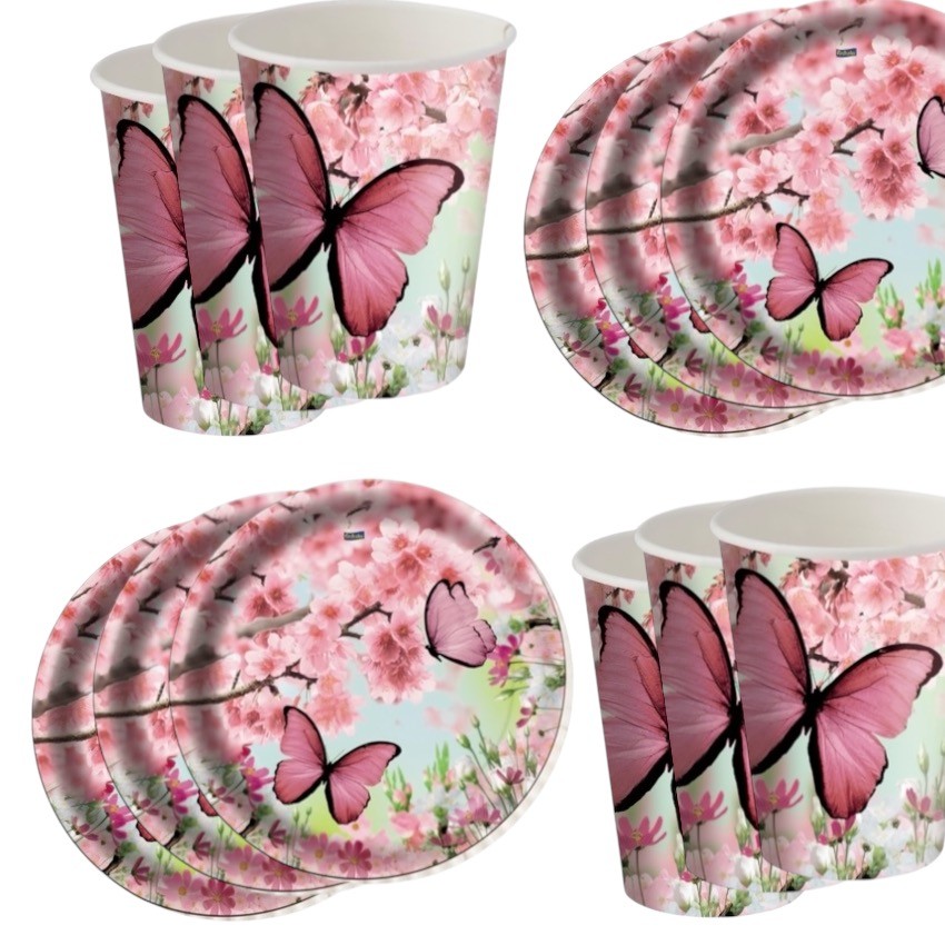 Kit Festa JARDIM ENCANTADO BORBOLETAS 8 Pratos + 8 Copos Descartável 200 Ml Papel - FESTCOLOR