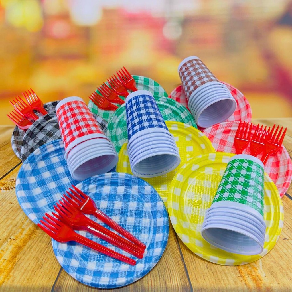 KIT FESTA JUNINA 50 PESSOAS DESCARTAVEIS VARIADOS 50 GARFO + 50 PRATO + 50 COPO