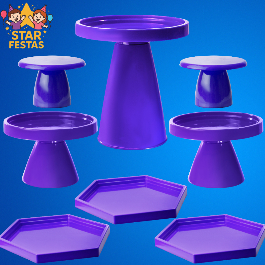 Kit Festa Minimalista - 1 Boleira Minimalista G , 2 Boleiras Minimalistas , 2 Mini Cakes Slim e 3 Sextavadinha