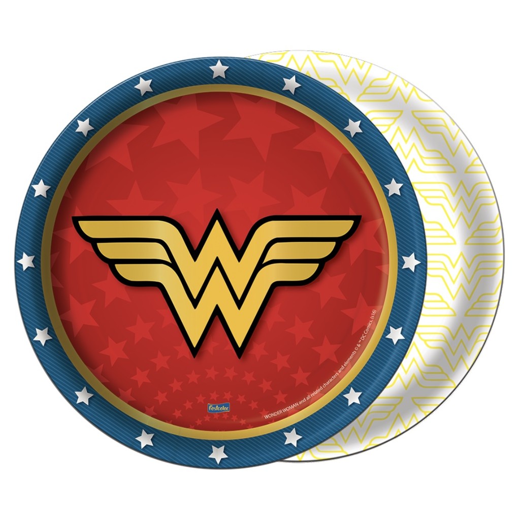 KIT FESTA ; MULHER MARAVILHA 8 COPO PAPEL 200ML DE PAPEL 8 PRATO DE PALE 18 CENTIMETROS PODE SER UTILIZADOS EM DECORAÇÃO DE FESTAS COMO DECORAÇÃO DA MESA E IDEAL PARA SERVIR BEBIDAS E BOLOS FESTCOLOR PRODUTO LICENCIADO!