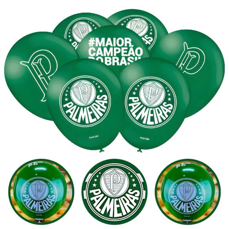 Kit Festa Palmeiras Decoração Aniversário Painel TNT 1,4 x 1 METRO + 25 Balões n9" FESTCOLOR