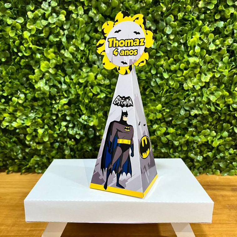 * KIT CAIXAS PERSONALISADAS PARA FESTA DO BATMAN * * LEIA ATENTAMENTE ANTES DA COMPRA, SUA DÚVIDA PODE ESTAR NA DESCRIÇÃO. * ATENÇÃO: Após a compra, é necessário informar no chat de mensagens o NOME e IDADE da criança. Caso não nos informe Nome e Idade até o prazo do envio, será enviado sem personalização. _________________________________________________________________________________ * IMPORTANTE: Por favor, observe cuidadosamente o prazo estabelecido pela Shopee, que abrange nosso tempo de produção somado ao prazo da transportadora. Evite finalizar a compra se o prazo total ultrapassar a data de sua festa. _________________________________________________________________________________ * As cores do produto podem variar de tonalidade e cor de acordo com a configuração de cada monitor, e claridade do local onde a foto foi tirada. _________________________________________________________________________________ - PEGUE E MONTE - Personalizados serão enviados CORTADOS, VINCADOS e DESMONTADOS, você terá que dobrar, colocar as laterais e finalizar com os lacinhos que iremos enviar junto ao pedido. (As peças vão desmontadas para garantir que chegue até você sem estragos). - Arte totalmente impressa nas caixas. (sem apliques em 3D). - Os produtos vão como nas fotos, não fazemos alterações na arte e modelos. - Não mandamos para aprovação. - Editamos somente NOME e IDADE. - Feitos em papel fotográfico 180g, impressão em qualidade alta. - Não acompanha guloseimas. - QUANTIDADES DE PEÇAS POR KIT 20 Peças - 4 unidades de cada. 30 Peças - 6 unidades de cada. 40 Peças - 8 unidades de cada. 50 Peças - 10 unidades de cada. - MEDIDAS Caixa Milk - 12 cm (Altura) x 6 cm (Comprimento) x 6 cm (Largura) Caixa Pirâmide - 18 cm (Altura) x 6 cm (Comprimento) x 6 cm (Largura) Caixa Maleta - 9 cm (Altura) x 8 cm (Comprimento) x 5 cm (Largura) Caixa Cubo - 10 cm (Altura) x 6,5 cm (Comprimento) x 6,5 cm (Largura) Caixa Triangulo Love - 14 cm (Altura) x 11 cm (Comprimento) x 8 cm (Largura) - Qualquer dúvida ou novo tema clique em "Contatar Vendedor" - Estamos à disposição!