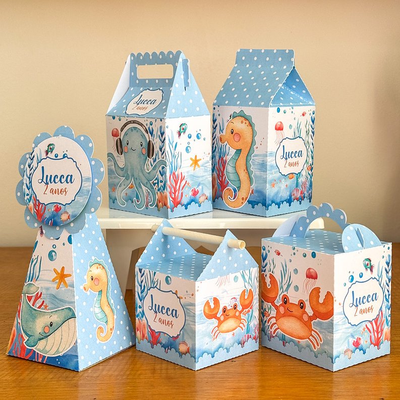 Kit Festa Personalizados Fundo do Mar Menino | Lembrancinhas Caixinhas para festa - PEGUE E MONTE