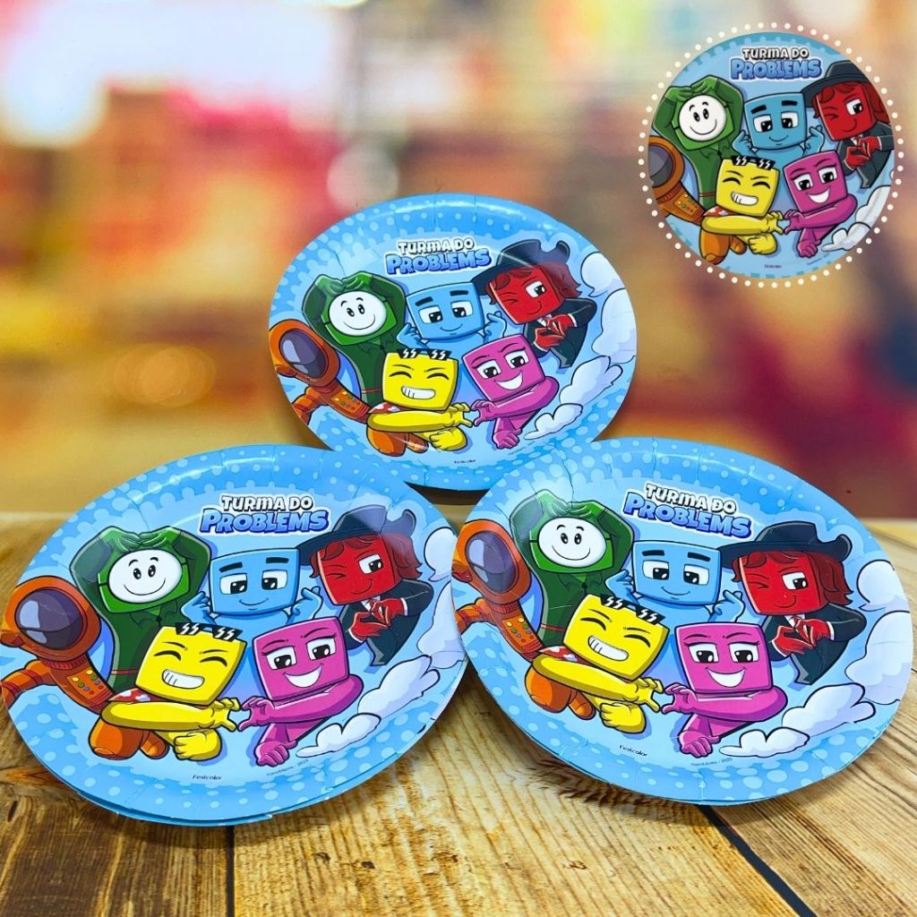 Leve mais diversão e cor para a sua festa com o Kit Festa Turma do Problems. O kit é composto por: 16 pratos descartáveis de papel com diâmetro ideal para servir doces, salgados e sobremesas, estampados com os personagens animados da Turma do Problems em um design vibrante e divertido. 16 copos descartáveis de papel de 200 ml, perfeitos para refrigerantes, sucos e outras bebidas, também com ilustrações coloridas dos personagens. Ideal para festas infantis, aniversários e comemorações temáticas, esse kit traz praticidade na organização e garante um ambiente alegre e descontraído para os pequenos fãs da turma mais animada da internet! Produto oficial Festcolor.