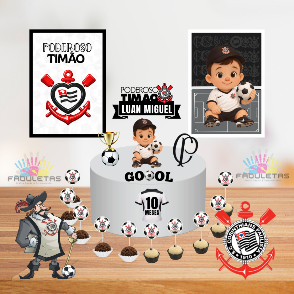 Kit Festa Só Um Bolinho CORINTHIANS TIMÃO BABY MENINO Enviar Nome/Idade IMEDIATAMENTE