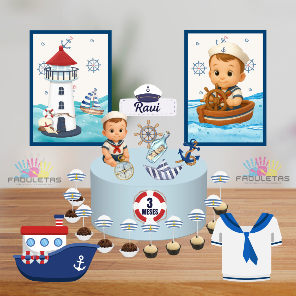 Kit Festa Só Um Bolinho MARINHEIRO BABY Enviar Nome/Idade IMEDIATAMENTE