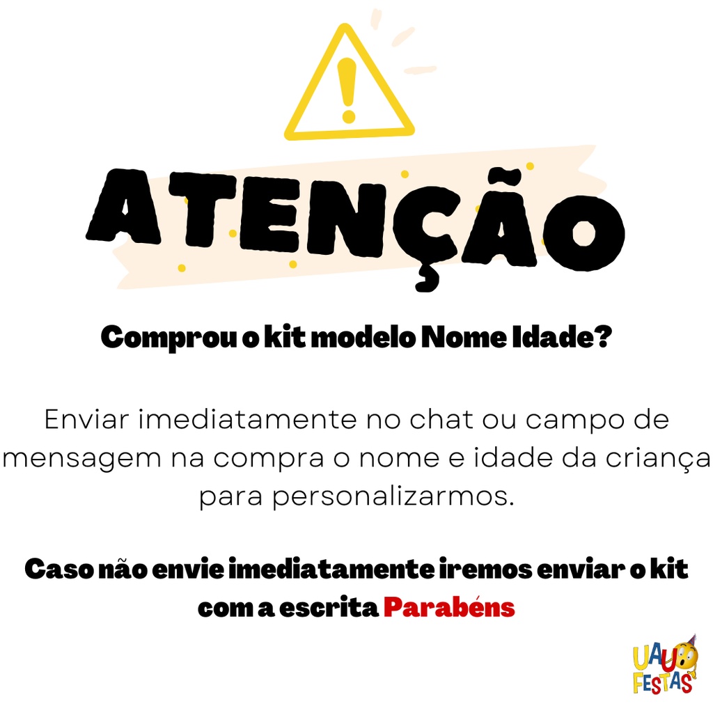 🤖 LEIA COM ATENÇÃO! 🧐 AS CAIXINHAS-LEMBRANCINHAS NÃO SÃO PERSONALIZÁVEIS. NÃO DÁ PRA COLOCAR NOME E IDADE NELAS. SÃO IDENTICAS A FOTO DO ANÚNCIO! 🥳 Peça nosso link avulso caso queira comprar caixinhas/maletinhas/piramides personalizadas com nome e idade via chat! 🌟 Este Kit contém: - 1x Topo de Bolo escrito ''Parabéns'' ou Personalizado caso compre o modelo nome idade. - 3x Quadros para Decoração Tamanho A4 (21x29,70cm) - 20x Tag para Doces ou Cupcake - (4,5cm) - 8x Bandeirola escrito Parabéns (Tamanho aproximado de 21cm) - 5x Caixinha Milk - Tamanho: 14x6,5cm - 5x Caixinha Piramide - Tamanho: 16x8cm --------------------------------------------------------------------------------------- - Produtos desenvolvidos em papéis de 180/240g - Os itens são enviados cortados - O kit Acompanha os Palitos da Tag e Topo de Bolo para Colagem. - As Caixinhas são de encaixe, não precisa de cola. ⭐⭐⭐⭐⭐⭐ (IMPORTANTE) ⭐⭐⭐⭐⭐⭐ 👉👉👉 Caso compre o modelo nome + idade, enviar imediatamente nome e idade a serem colocados no kit. 👉👉👉 Você pode enviar pelo chat ou deixar no campo de mensagem que aparece na hora da compra. 👉👉👉 Caso não envie, o topo vai com a escrita parabéns. 😻 Temos muitos kits a sua disposição e trabalhamos com diversos temas 😻 Caso não encontre algum tema, pode chamar um de nossos vendedores no chat. 😍 OBRIGADO POR FAZER A SUA FESTA CONOSCO! 😍