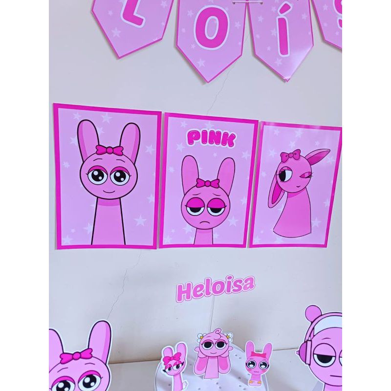 ✅LEIA COM ATENÇÃO ANTES DE COMPRAR: Kit Festa em Casa - Tema Sprunki Pink 🟡Personalizado com nome e idade. 🚛PRAZO DE ENTREGA: após 10 dias da compra NOSSO KIT CONTÉM: ❎ Bandeirola ❎ 3 Pôster tamanho A4 - tamanho folha sulfite ❎ 2 Display de mesa - tamanho +ou- 20cm ❎ 1 Topo de Bolo **ATENÇÃO** Após a compra, acesse o campo de mensagens (chat com o vendedor) e envie o nome e idade da criança e qualquer informação importante. ⛔ Se não recebermos os dados em até 24h, o pedido será feito sem personalização e a bandeirola escrito PARABÉNS ❗INFORMAÇÕES IMPORTANTES❗ -Não fazemos alteração na arte, apenas no nome e idade; - Não enviamos arte para aprovação; -Verifique se o prazo de entrega atende a sua data. - As cores podem variar levemente devido as configurações da tela (celular, monitor, etc..) ❎IMPORTANTE ❎ Fazemos em todos os temas! Entre em contato conosco pelo chat