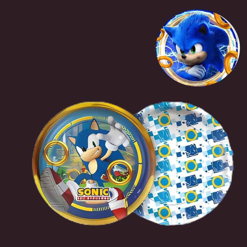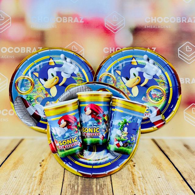 KIT FESTA SONIC 8 COPO PAPEL 180ML DE PAPEL 8 PRATO DE PALE 18 CENTIMETROS PODE SER UTILIZADOS EM DECORAÇÃO DE FESTAS COMO DECORAÇÃO DA MESA E IDEAL PARA SERVIR BEBIDAS E BOLOS REGINA PRODUTO LICENCIADO!