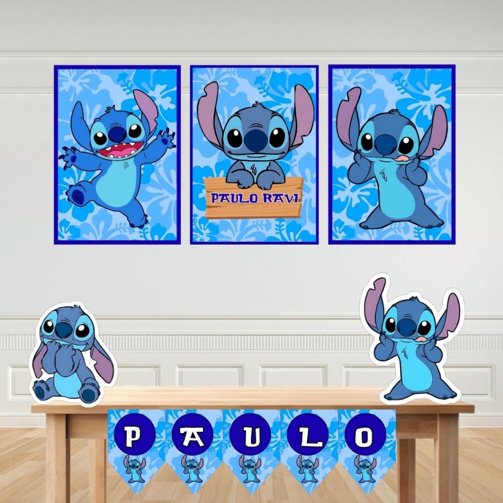 Kit Festa stich “Só um Bolinho” 🎉 Topo + Display + Bandeirolas+ tags p/doci – Personalizado com Nome – TODOS OS TEMAS
