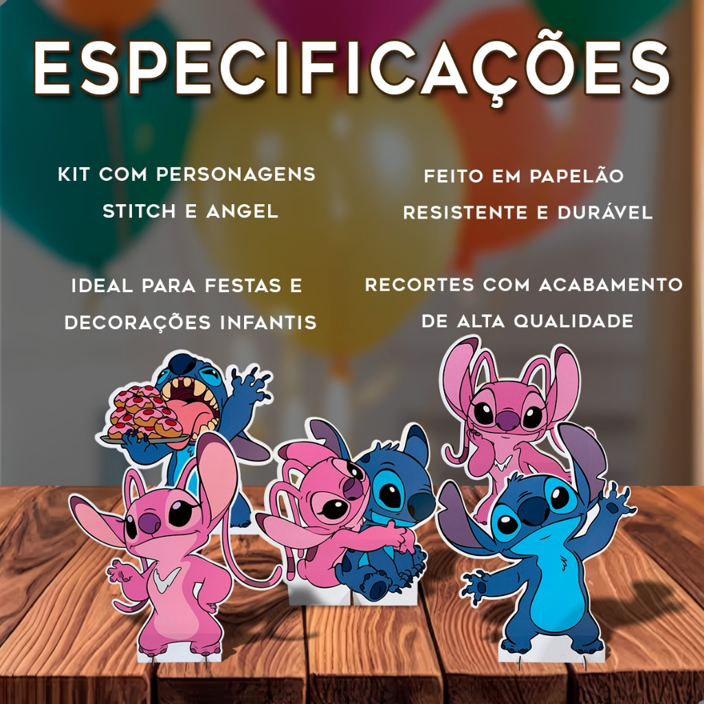 Kit Festa Stitch e Angel MDF 5 Displays 20cm Rosa e Azul Decoração de Mesa Aniversário Infantil