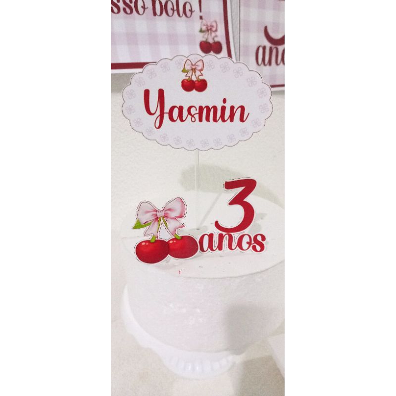Kit Festa no tema Cerejinha Personalizado com nome e idade do aniversariante essa é a melhor opção para comemorações mais intimistas, voltado para quem não abre mão de celebrar avida de pessoas especiais, decorando o ambiente com personalizados lindíssimos e de muita qualidade, já prontos que abrilhantam o evento e pagando pouco por isso. Confira abaixo e escolha a opção que mais se adequa ao seu evento: Kit Bronze sem caixinhas -Bandeirolas de 13cm altura x 10,2cm largura escrito PARABÈNS ou NOME até 09 letras (acompanha cordão | fita) caso o nome seja menor que 09 letras, completamos com personagem do tema -3 Pôster de parede (+-26cm altura +-16m largura cada) -2 Displays de mesa (Aprox. 20cm altura x 15 largura dependendo do personagem) -1 Topo de Bolo plaquinha (15cm) idades e 1 personagem do tema -10 Topinhos de Doces Personalizados Kit Ouro com caixinhas -Bandeirolas de 13cm altura x 10,2cm largura escrito PARABÈNS ou NOME até 09 letras (acompanha cordão | fita) caso o nome seja menor que 09 letras, completamos com personagem do tema -3 Pôster de parede (+-26cm altura +-16m largura cada) -2 Displays de mesa (Aprox. 20cm altura x 15 largura dependendo do personagem) -1 Topo de Bolo plaquinha(15cm) idades e 1 personagem do tema -06 caixas Bis duplos (4,5cmA x 5,5 cm L x 3,5cm P) -06 Forminhas de doces Personalizadas -06 Topinhos de Doces Personalizados -3 Caixas Miks com apliques 3D (pequena) -3 Caixas Pirâmides com apliques 3D (pequena) OBS: Não acompanha bandejas de acrílicos e bolo fake de isopor ( todos utilizados para fotos) Confira mais detalhes sobre os itens e sobre nossa loja *os Personalizados são feitos em papel Fotográficos Matte (fosco) 180g papel de ótima qualidade, tem maior durabilidade, é mais grosso, dá um excelente acabamento e tem alta qualidade de impressão a jato de tinta. -Pensando na sua satisfação e para garantir uma maior qualidade e nitidez da impressão, utilizamos apenas tintas ORIGINAIS no nosso processo de produção. -Nossos Personalizados já são enviados prontos para uso, isso é: já cortados, vincados, colados, com apliques, tags, laços e meia perolas já . (desmontados. só para encaixes e estará montado e SEM RECHEIO). a Caixa Milk Tb encaixa na parte superior -Por gentileza, após a compra envie imediatamente no chat os dados da personalização para acelerarmos a sua encomenda ( CASO NÃO SEJA ENVIADOS ATÉ 12 HORAS, o pedido será confeccionado SEM PERSONALIZAÇÂO). -Verifique com atenção o prazo dado pela plataforma que inclui prazo de produção + o prazo da transportadora. NÂO finalize a compra caso o prazo final ultrapasse a data da sua festa. -podem haver pequenas variações de tonalidades de cores, tendo em vista que os tons mudam conforme as configurações da tela do seu celular|computador -os laços são feitos de fitas lisas de cetim e podem sofrer alterações de cor conforme disponibilidade no estoque, mas são inseridos ornamentando com a paleta de cores do tema. caso tenha mais alguma dúvida é só falar no chat possuímos um atendimento rápido e de qualidade. fazemos em todos os temas. caso não encontre o tema desejado, realize a a compra no anúncio selecionando a opção "OUTRO TEMA, INFORMAREI NO CHAT"