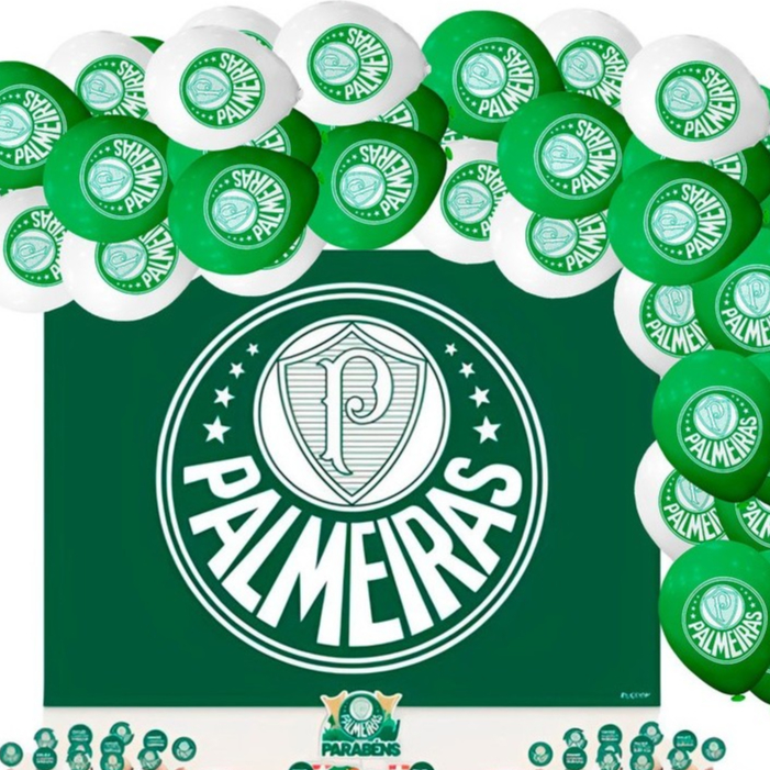 Kit Festa Time Palmeiras - Decoração, Aniversário, Painel 1,40m + 20 Bexigas Balão Temáticos