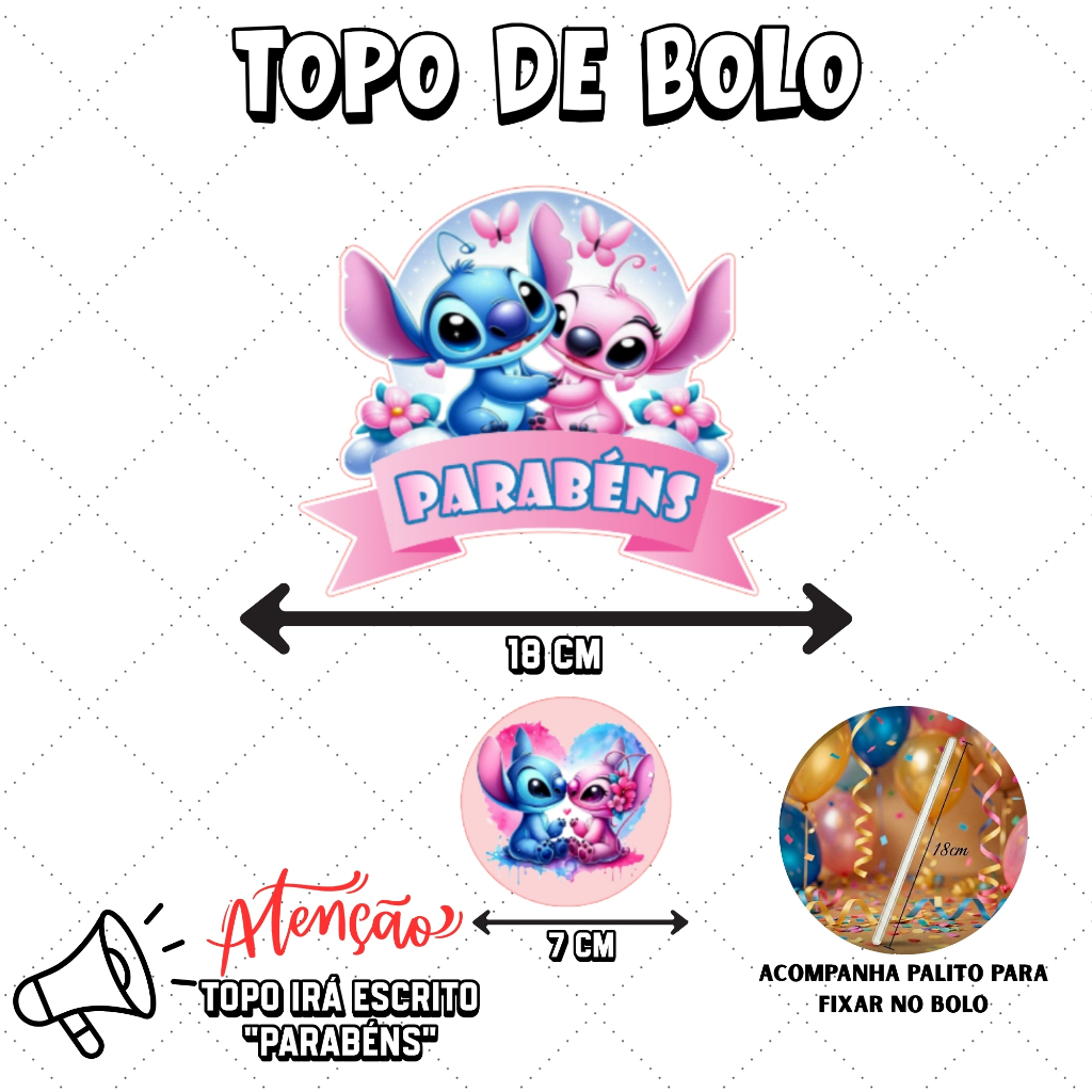 Kit Festas Stitch e Angel Aniversário Decoração +10 CAIXINHAS Só Um Bolinho
