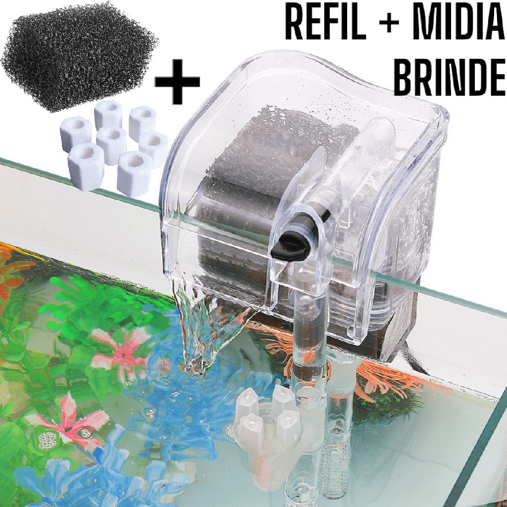 Kit Filtro externo HF-200 Hang -on aquário até 40l cascata ORIGINAL + Refil + Midia Biologica