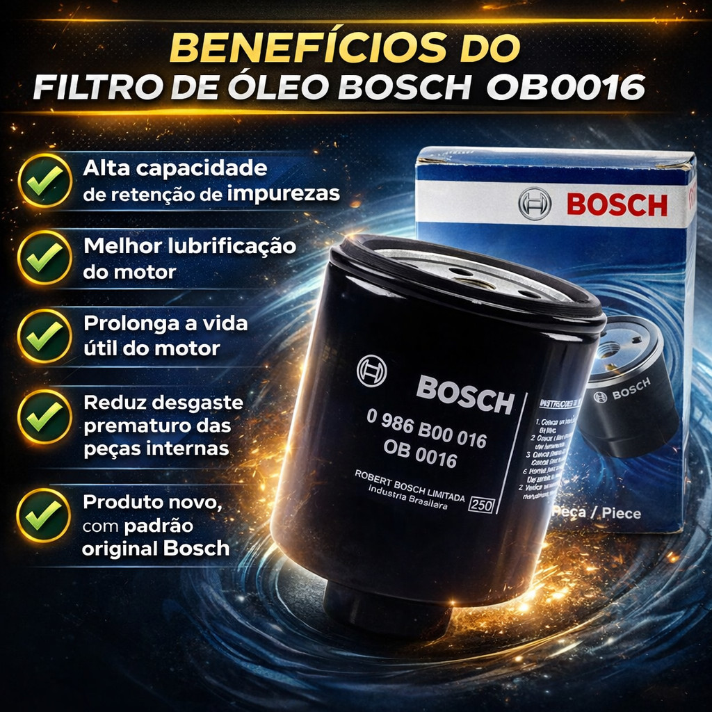 Kit Filtros Óleo + Ar + Combustível Original Bosch Garanta proteção completa para o motor do seu VW com o Kit de Filtros Bosch Original Ideal para manutenção preventiva, proporcionando melhor desempenho, economia e maior durabilidade do motor. Compatível com: Volkswagen Gol G5 / G6 1.0 Volkswagen Voyage G5 / G6 1.0 Consulte ano e motorização antes da compra. O Kit Contém: 1 Filtro de Óleo 1 Filtro de Ar do Motor 1 Filtro de Combustível Benefícios do Kit Bosch: Produto 100% Original Máxima proteção contra impurezas Melhor desempenho e economia de combustível Maior vida útil do motor Encaixe perfeito padrão montadora Por que trocar o kit completo? Mantém o motor limpo Reduz desgaste interno Garante melhor funcionamento Manutenção completa em um único kit Produto novo Acompanha nota fiscal Envio Rápido