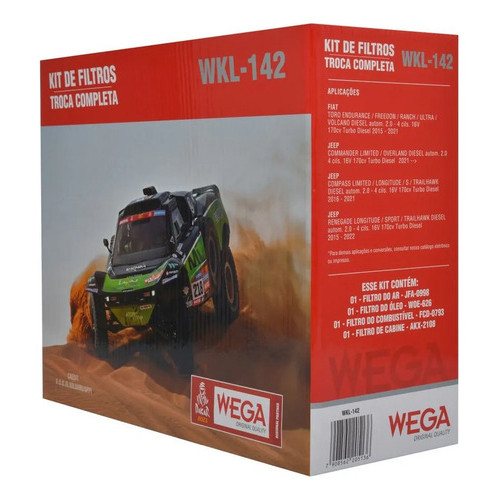 CONTEÚDO: 1 Filtro de Óleo WOE-626 1 Filtro de Ar JFA-0998 1 Filtro de Combustível FCD-0793 1 Filtro de Ar Condicionado AKX-2108 COMPATÍVEL COM OS MODELOS: • Toro 2.0 16v 2015 • Toro 2.0 16v 2016 • Toro 2.0 16v 2017 • Toro 2.0 16v 2018 • Toro 2.0 16v 2019 • Toro 20 16v 2020 • Toro 20 16v 2021 IMPORTANTE: • NÃO NOS RESPONSABILIZAMOS POR INSTALAÇÃO MAL REALIZADA; • A INSTALAÇÃO DEVE SER FEITA POR UM PROFISSIONAL ESPECIALIZADO. ATENÇÃO: AS COMPRAS REALIZADAS EM NOME DE PESSOA JURÍDICA ESTÃO SUJEITAS À COBRANÇA DE ICMS, CONFORME PROTOCOLO ICMS 41, DE 4 DE ABRIL DE 2008. CASO VOCÊ TENHA DÚVIDAS SOBRE O PERCENTUAL A SER APLICADO, CONSULTE A CLÁUSULA SEGUNDA, §1° DO REFERIDO PROTOCOLO.