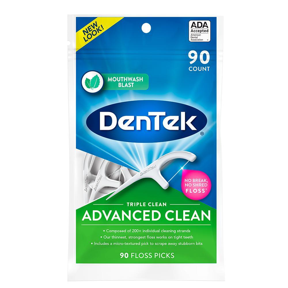 Kit Fio Dental Dentek Floss Picks Triple Clean Advanced Clean 360 unidades Fio dental com fio de limpeza extra forte remove os alimentos, a placa bacteriana, combate o mau hálito, evita cáries e doenças gengivais. - Inclui limpador de língua que remove os germes que causam mal hálito. - Haste / Palito higienizador texturizado para limpeza dos locais de mais difícil acesso. - Fio dental com garantia que não desfia e não arrebenta. Eles são compostos por mais de 200 fios individuais, mais fino e forte e alcançam os cantinhos e espaços mais apertados. O fio dental contém flúor e sabor de menta. - Kit Contém: 4 pacotes de Fio Dental Dentek Floss Picks Triple Clean Advanced Clean 90 unidades cada - Compre produtos Dentek