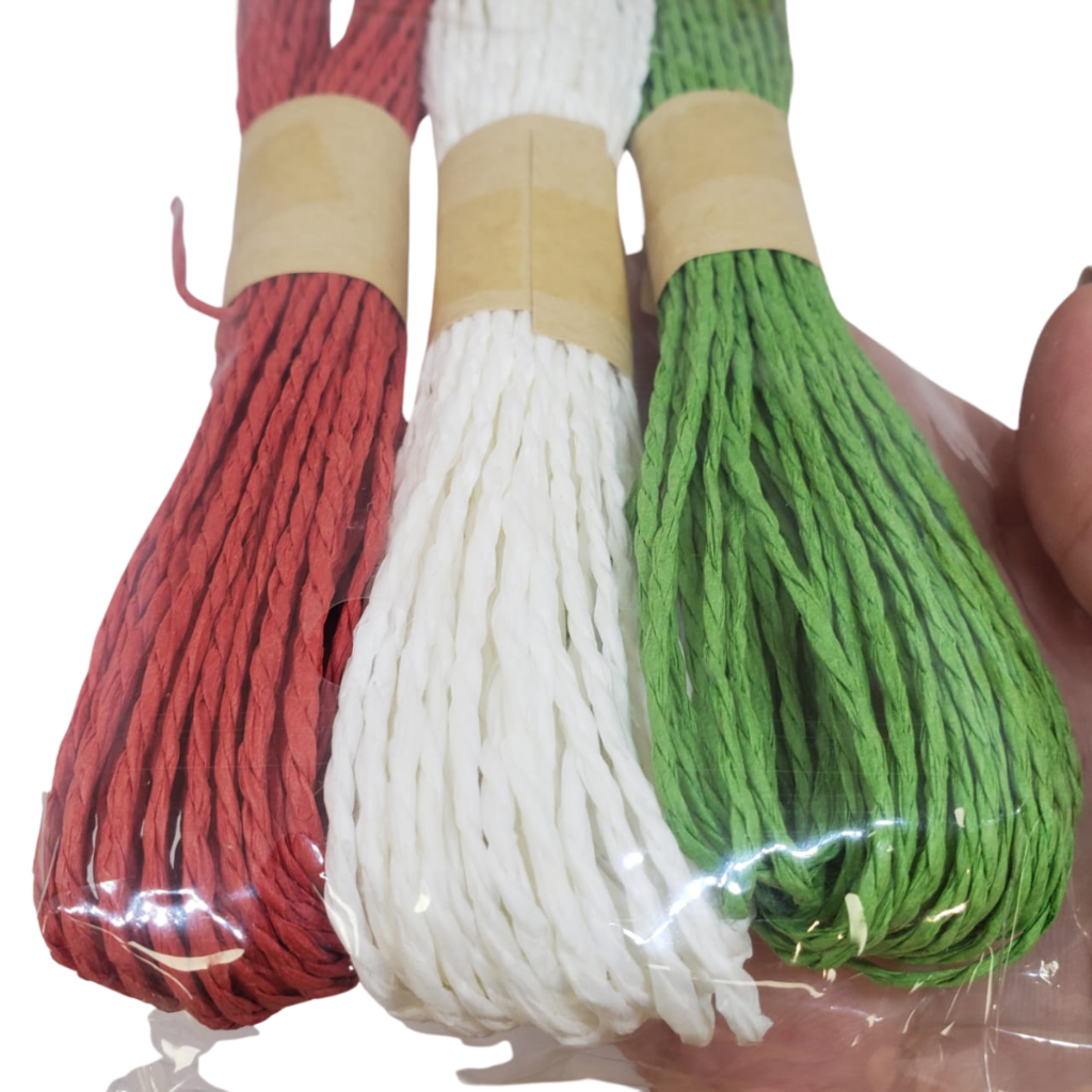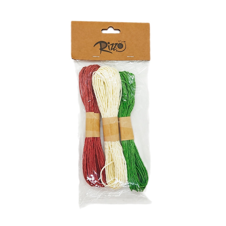 Kit Fios Decorativos de Papel Torcido Verde, Branco e Vermelho - 10m - 1 unidade - Rizzo