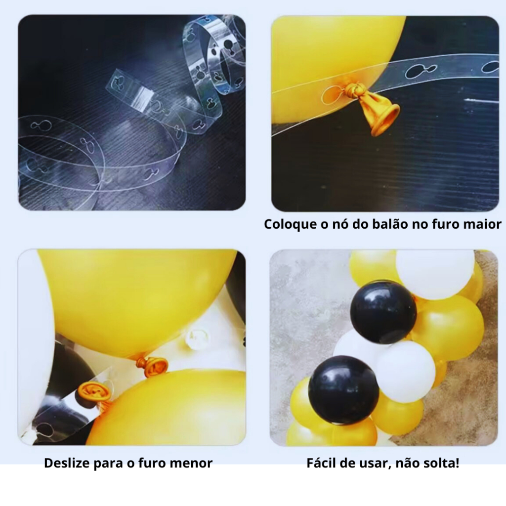 Kit Fita Arco Descontruído 5M + Fita Gota Cola Bexiga Balão 100 Pontos