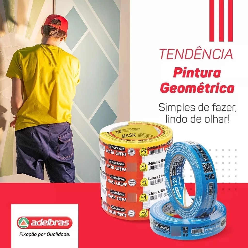 COMPOSIÇÃO: Papel crepe saturado branco, coberto com adesivo à base de borracha natural e resinas. USO E INFORMAÇÕES ADICIONAIS: Papel com excelente alongamento, proporcionando boa performance em curvas e contornos do mascaramento. Para uso industrial, mascaramento de pinturas imobiliárias, trabalhos escolares, fixações, proteção, enfaixamentos, artesanato, decoração, bricolagem, etc. Depois de aplicada, não deixa resíduo na superfície. Resistente a temperaturas de até 100ºC e à umidade. NOTA: Deve ser removida em até 24 horas após a aplicação.