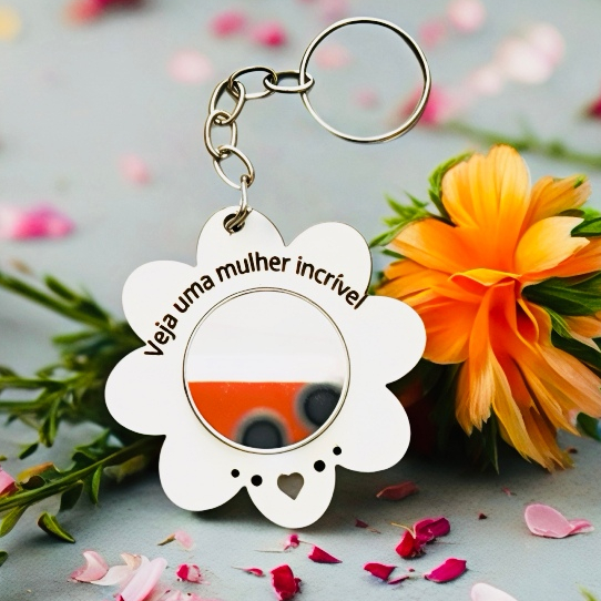 Kit FLOR INCRÍVEL, MDF branco com espelho, perfeito acabamento, já vão todos montados , para facilitar sem tempo, pois quando você receber já estarão prontos apenas para que você possa distribuir, são lindos de mais e uma ótima opção para presentear alguém * SELECIONE A QUANTIDADE NA HORA DA COMPRA! * Os espelhos vão soltos, e possui o adesivo atrás , basta retirar e colar na flor ( MUITO PRÁTICO ) * As correntes são reforçadas * Todos montados * Perfeito acabamento * Envio imediato !