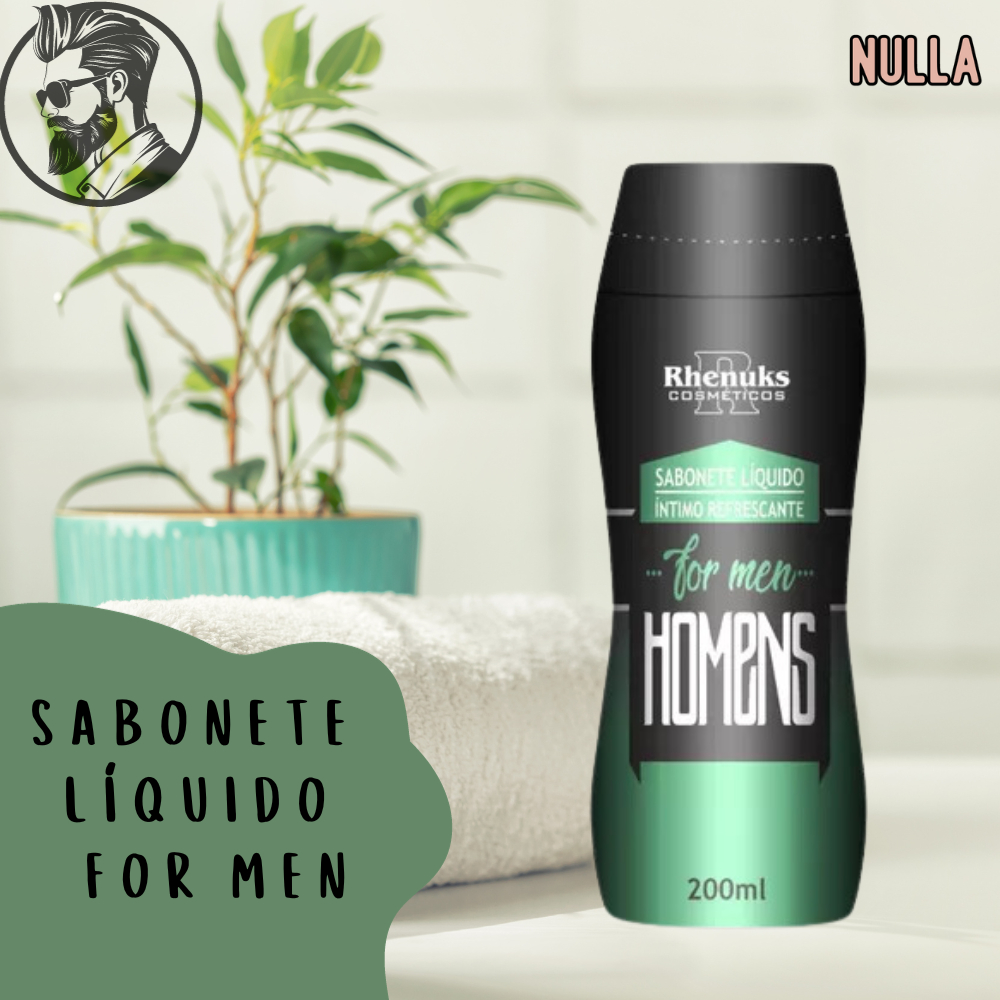 KIT For Men com Shampoo 3 em 1 c/ 400 ml cabelo barba e corpo + Sabonete Intimo 200ml Rhenuks Homem