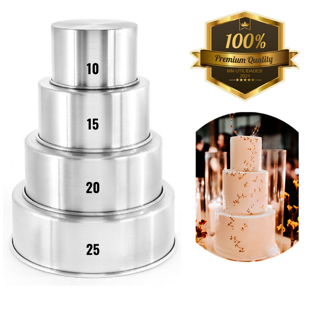 Kit Forma Assadeira Redonda 10X10 15x10 20x10 25x10 Bolo Alto Fundo Fixo