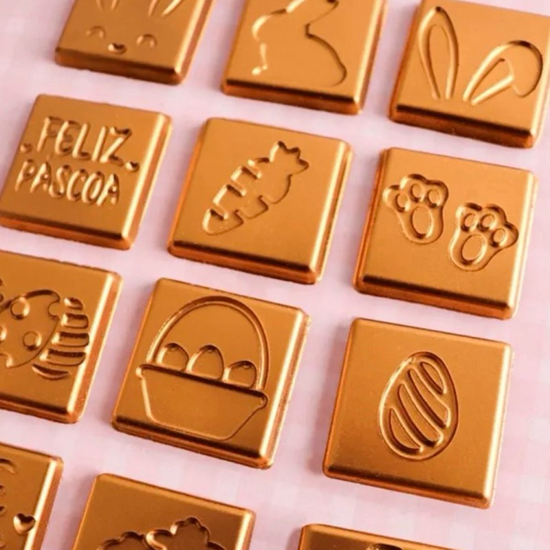 KIT FORMA BWB PÁSCOA 10557 ORELHA COELHO + 10607 APLIQUE COELHO + 10611 BOMBOM + 10612 TABLETE PÁSCOA CÓD: 10557 ORELHAS DE COELHO Comp.: -- x Larg.: -- x Alt.: 4 mm CÓD: 10607 APLIQUE DE COELHO Comp.: 35 mm x Larg.: 29 mm x Alt.: 6 mm Peso médio: 5 g CÓD: 10611 TABLETINHO OVO COELHO Comp.: 40 mm x Larg.: 25 mm x Alt.: 9 mm Peso médio: 6 g CÓD: 10612 TABLETINHO QUADRADO PASCOA Comp.: 35 mm x Larg.: 35 mm x Alt.: 5 mm Peso médio: 6 g