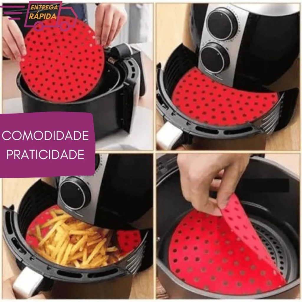 Kit Forma e Tapete de Silicone Airfryer para Assar Grelhar Cozinhar Redonda