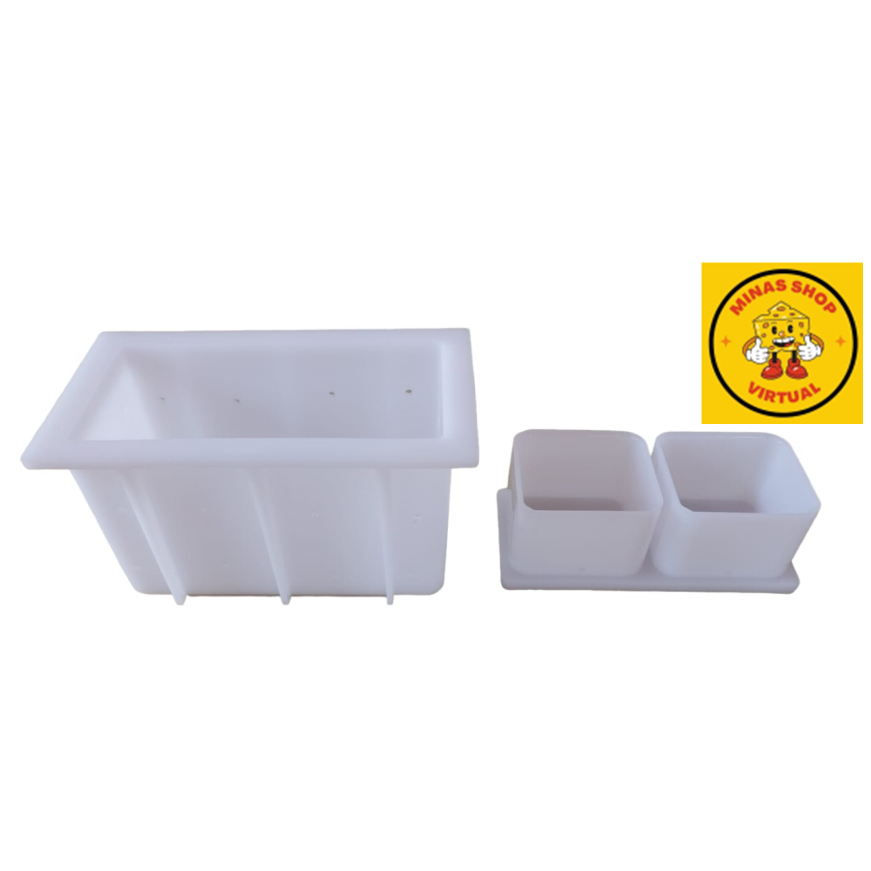 Kit Forma para: - Prato Lanche - Queijo Coalho Capacidade: 400 a 600g Conteúdo do Kit Completo 01 - Forma PL-500 01 - Prensador PL-500 01 - Dessorador PL-500 01 - Touca PL-500 Medidas internas da forma Altura x Largura x Comprimento 82,5 x 70 x 130 mm (medidas em milímetros) Obrigado pela preferência!