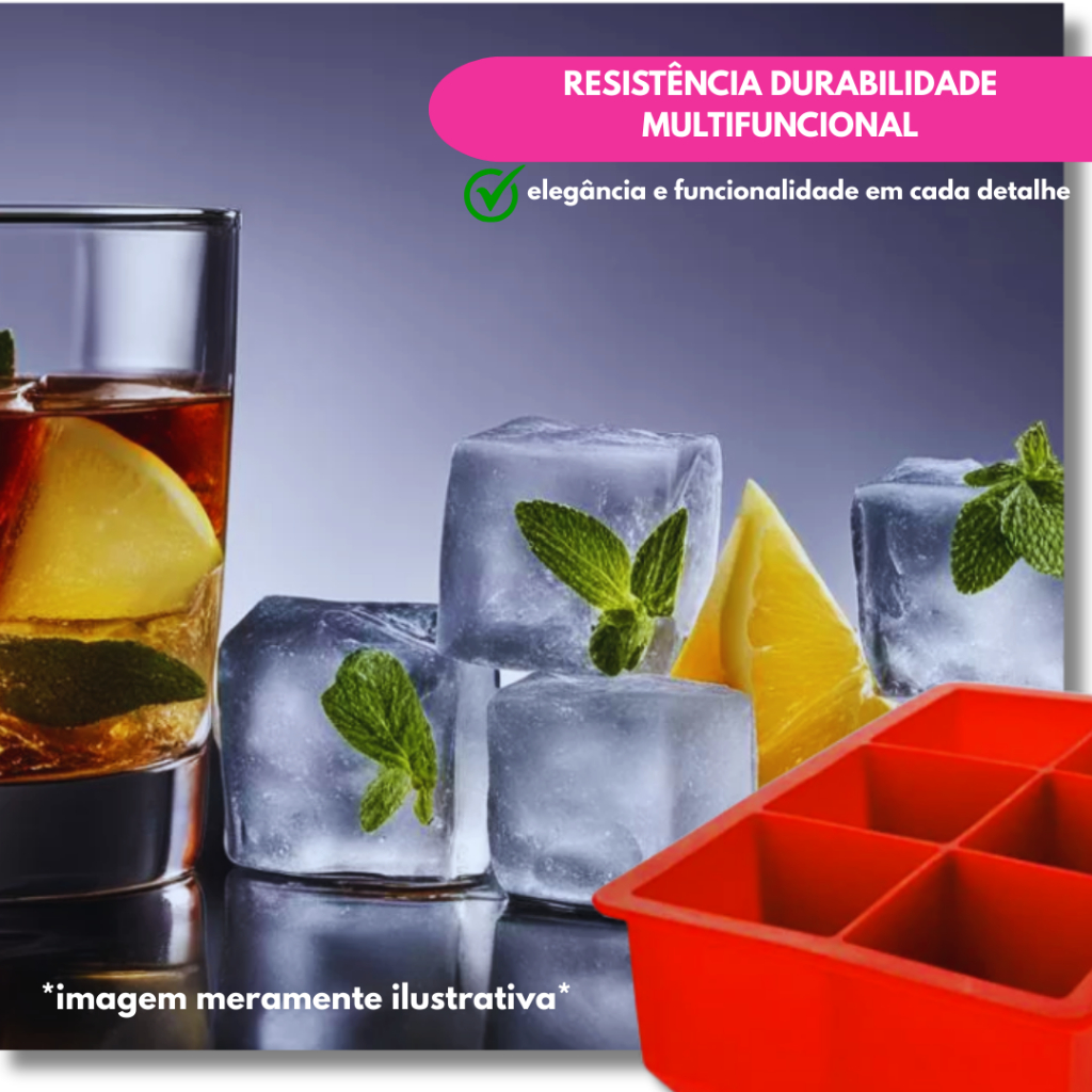 Kit Forma Silicone Gelo Grande 6 Cubos Flexível Forminha Maleável Drink Whisky Chocolate Gelatina
