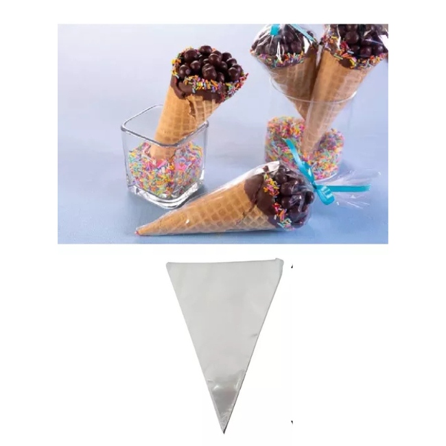 KIT Forma Suporte Para Cone Bwb ~ Saco saquinho CONE 14x23 Médio Plástico Bopp Transparente 50 unid