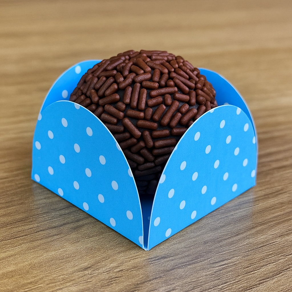 KIT 50 A 450 Forminhas para Doces 4 Pétalas Azul claro poá branco - NC Toys As Forminhas para Doces 4 Pétalas da NC Toys são fáceis de montar e utilizadas para doces. Caracteristicas: Papel offset 180g Cor/Tema: Azul Claro poá branco Pode ser usada dos dois lados Medida: - Base de 3,5 centímetros - Largura 3,5 centímetros - Altura 2,6 centímetros Tamanho padrão para docinhos de festa.
