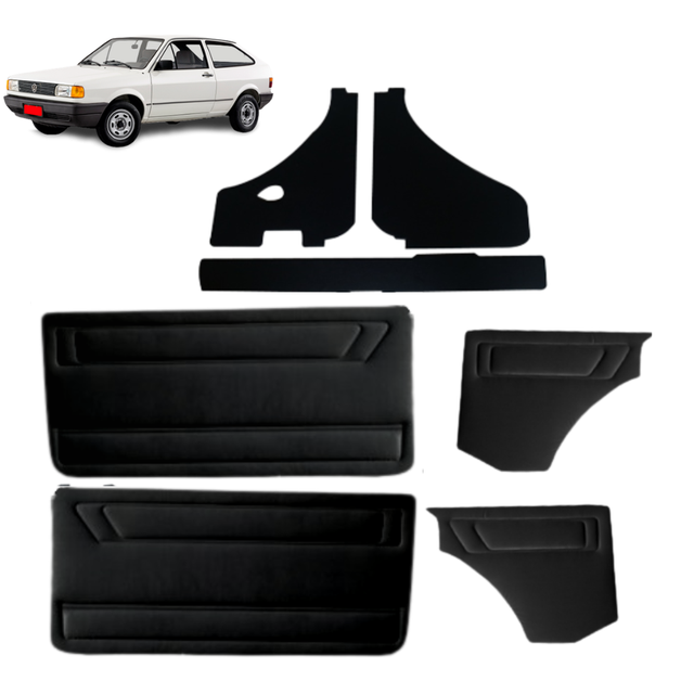 Especificações Técnicas: - Fabricado em eucatex revestido de napa; - Cor: Preto; - Para as Portas Dianteiras + Laterais Traseiras + Malas Kit Composto por: - 01 Par Forro Porta + 01 Par Lateral Traseira + Porta Malas (7 PEÇAS) Compatível com os Modelos: - Gol G1 Quadrado 1989 a 1994 Importante!!!! A Hemicar recomenda que a instalação seja sempre feita por um PROFISSIONAL ESPECIALIZADO e não se responsabiliza pelo mau uso/instalação do produto. Verifique a compatibilidade do produto com seu veículo para que não haja problemas na hora do uso ou da instalação!