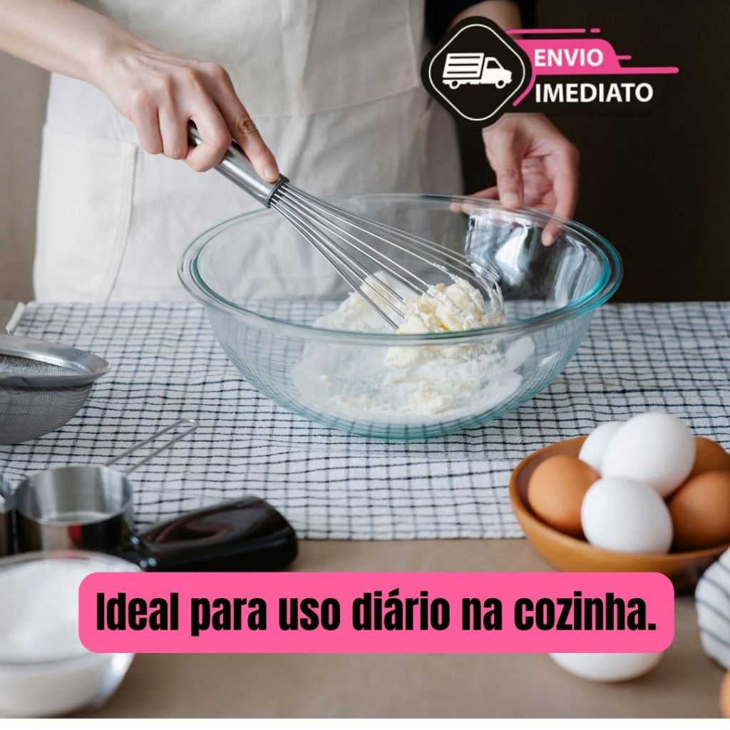 Kit Fouet + Espátula de Bolo | Praticidade e Estilo na Sua Cozinha! Dê um toque profissional às suas receitas com esse kit confeitaria essencial para quem ama cozinhar e decorar! Fouet Inox – Batedor de Arame Ideal para misturar massas leves, bater ovos, chantilly, cremes e muito mais. Feito em aço inoxidável resistente, não enferruja, não entorta e garante preparo rápido e uniforme. ️ Leve, ergonômico e fácil de limpar! Espátula de Silicone para Bolo Perfeita para cobrir, alisar, rechear e servir bolos e sobremesas. Com ponta flexível, resistente ao calor e não risca suas formas ou panelas. ️ Silicone de qualidade alimentar, durável e higiênico. Material de Qualidade: Inox + Silicone Premium Versátil: Ideal para confeitaria, padaria, cozinha do dia a dia e sobremesas Indispensável: Para quem usa batedeira, formas e ama praticidade Design Moderno: Funcional e bonito — combina com qualquer cozinha Transforme o preparo dos seus bolos e sobremesas em uma experiência prática, limpa e deliciosa! Seja para uso doméstico ou profissional, esse kit é tudo o que você precisa para arrasar na cozinha!