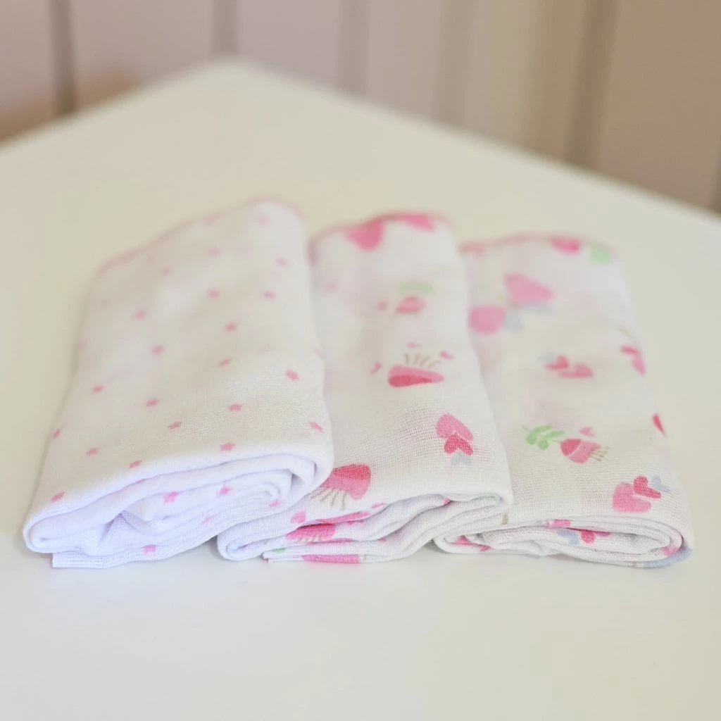Kit Fralda com 3 un Estampada Bebê Menina Borboletas Rosa