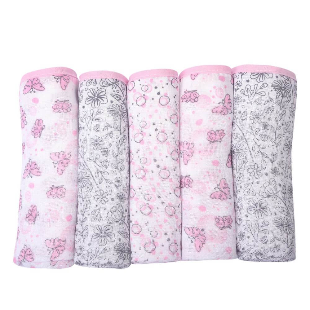 Kit Fralda De Pano Minasrey Composê Borboleta - 05 Peças